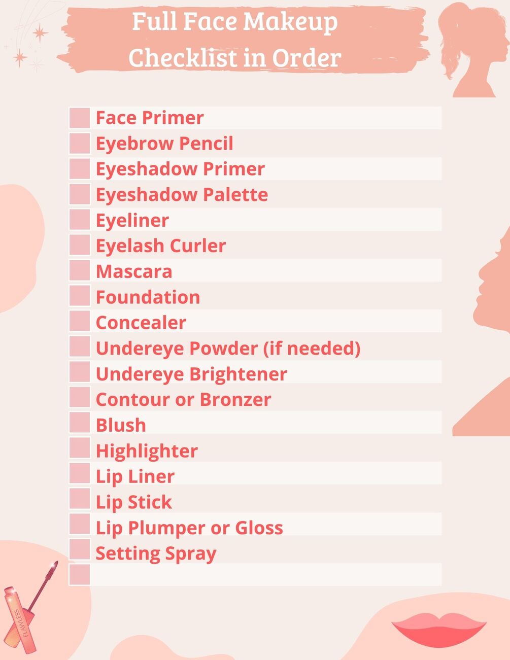 Full Face Makeup Checklist in Order
